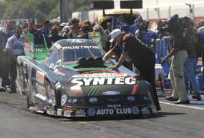 “I walked into a lot of what’s coming down the pipeline right now, and that’s the reason why I’m investigating. This has been since John (Force’s) incident and Eric (Medlen’s) problem, and I’ve been investigating numerous metallurgists trying to come to some kind of conclusion myself, but there is such a mixed result of opinions, especially with metallurgists, and aircraft hands-on people with mixed opinions that that’s why I can’t answer right now. “We’re doing some tests, some physical tests, actually on both materials to find out what is the best. I read Dr. Davis’s paper, and if you read it carefully he left a lot of things open. “I was in the meeting in “We’re working as hard as we can on this, but we’ve got to make sure that what we come up with is the right answer. I just got off the phone with an airframe engineer that’s been doing this for 25 years, and he would recommend heat treat. I’ve got about three other hands-on engineer metallurgists who recommend heat treat. I can find as many or more who would favor heat treat versus Condition N.” When we asked Olson about the SFI Funny Car chassis spec and its relationship to the NHRA rules, he said, “I’ll have to look into that. Remember, our stance and my stance is that our Number One thing is safety. I don’t care if these cars are made out of whatever, electric weld tubing, it doesn’t matter. Safety is our Number One concern. We aren’t dragging our feet, we just don’t want to make a wrong decision. We want to make sure that what we come up with is the right answer. I’ve been working on this from sunup to sundown, seven days a week for a long time, and I don’t have all the answers yet.”